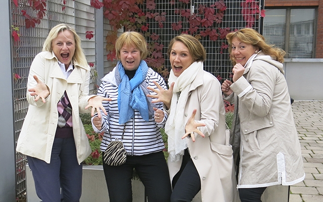 Handelsbankenin Josefiina Vornanen (toinen oik.) työtovereineen odottaa jo uusien tilojen valmistumista!